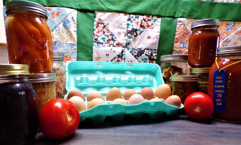We have fresh seasonal fruits and vegetables and canned goods that have been processed by federal guidelines to insure safe healthy foods for us and for you. We do try to have a wide range and variety of produce for sale. Some produce includes yellow squash, cucumbers, okra, tomatoes, beans, peppers etc. We also have brown eggs for sell from our home raised chickens. Prices do go up and down based on cost to grow produce so please feel free to contact us for availability and price.